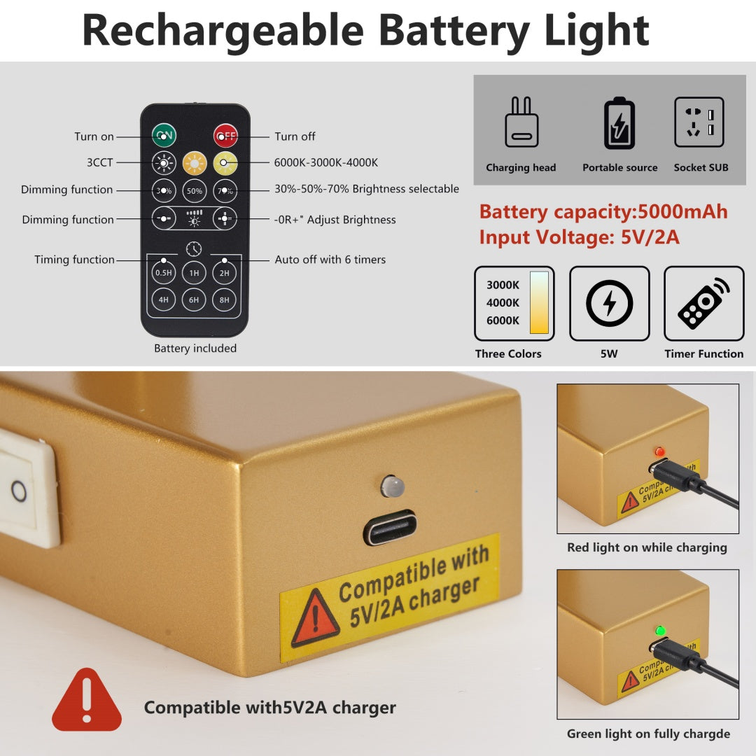 3CCT Dimmable with Remote Control: Switch between 3 light colors and adjust brightness from 10% to 100% with the included remote control. Remember the last used settings when reactivated. 【Wireless Wall Light】When the light is fully charged, it can work for up to 20 hours or more.(It depends on which brightness is used.) The wireless design makes your space more neat and clean.(Charging cable included) Easy Installation: Two mounting options - magnetic surface attachment or iron sheet installation with included screws for customizable positioning