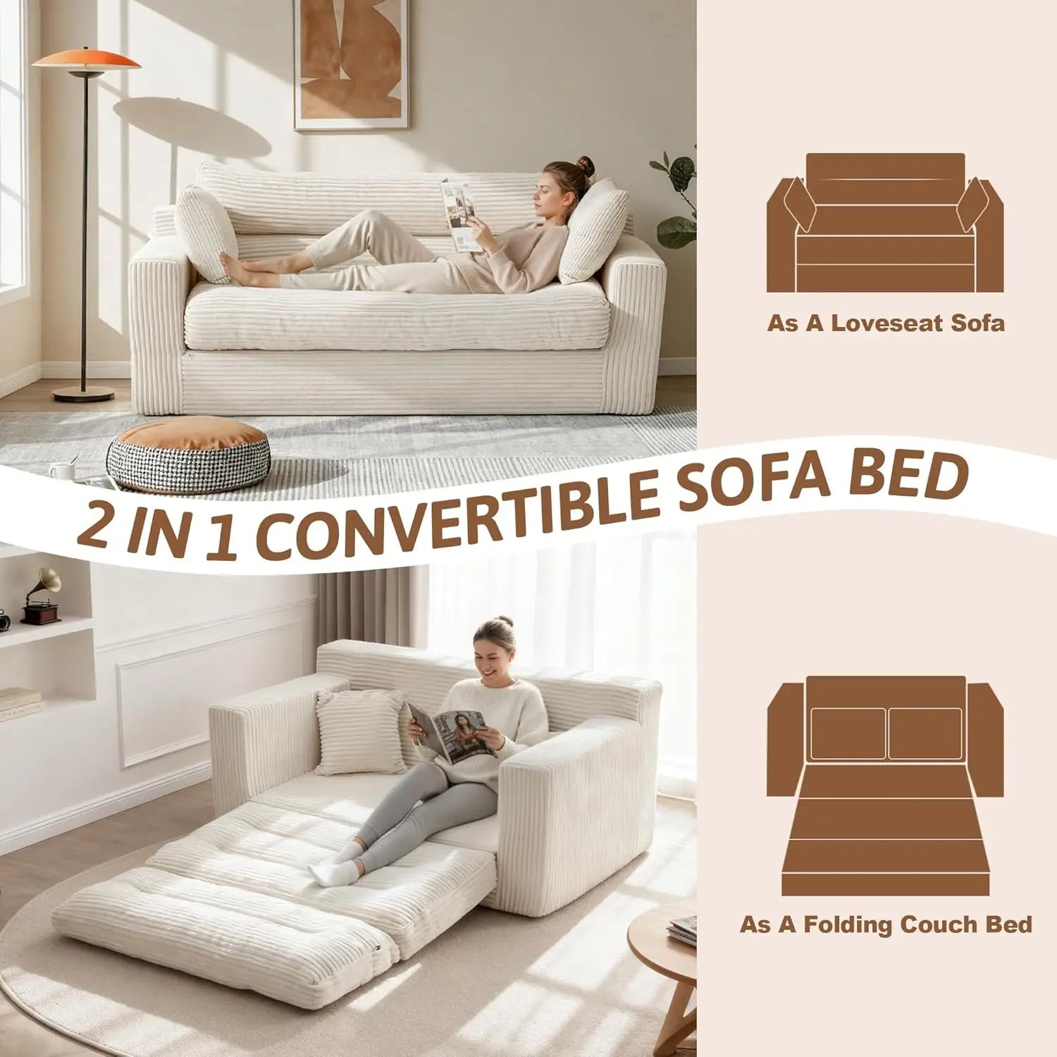 Convertible 2-Seater Sofa Bed – Pull-Out Folding Loveseat (Beige)