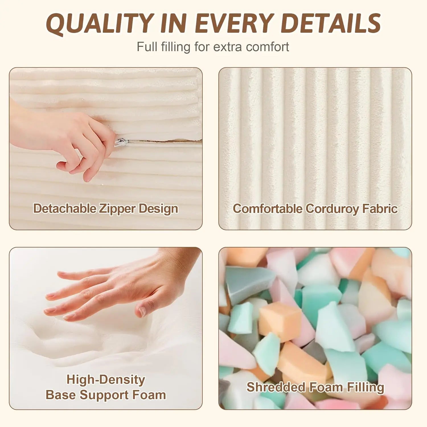 【STYLISH TEXTURED CORDUROY FABRIC】Wrapped in premium corduroy, this sofa couch in a box delivers a soft, skin-friendly feel with stylish ribbed texture. Durable and breathable, it's made to stay plush and beautiful through everyday lounging