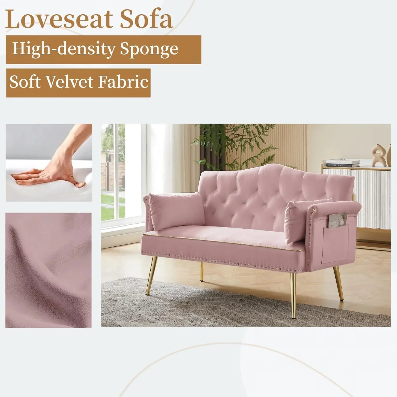 Comfortable velvet material :Our sofa is made of high-quality velvet, so the surface is quite soft and not easy to lint. In addition, the cushions are padded with high-density foam for more comfortable relaxation.